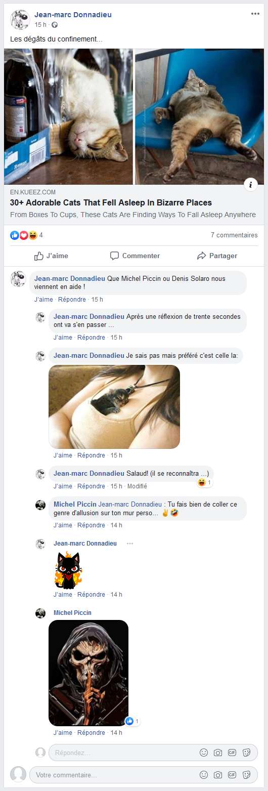 Et à ce stade, j’évite de parler de tous ceux parmi mes proches et mes relations actuelles qui ont perdu leur emploi ou leur activité professionnelle dès 2011 à la suite des harcèlements organisés à leur encontre par le même Jean-Marc Donnadieu intervenant à cet effet jusque dans les entreprises qui les employaient ou auprès de leurs clientèles respectives.